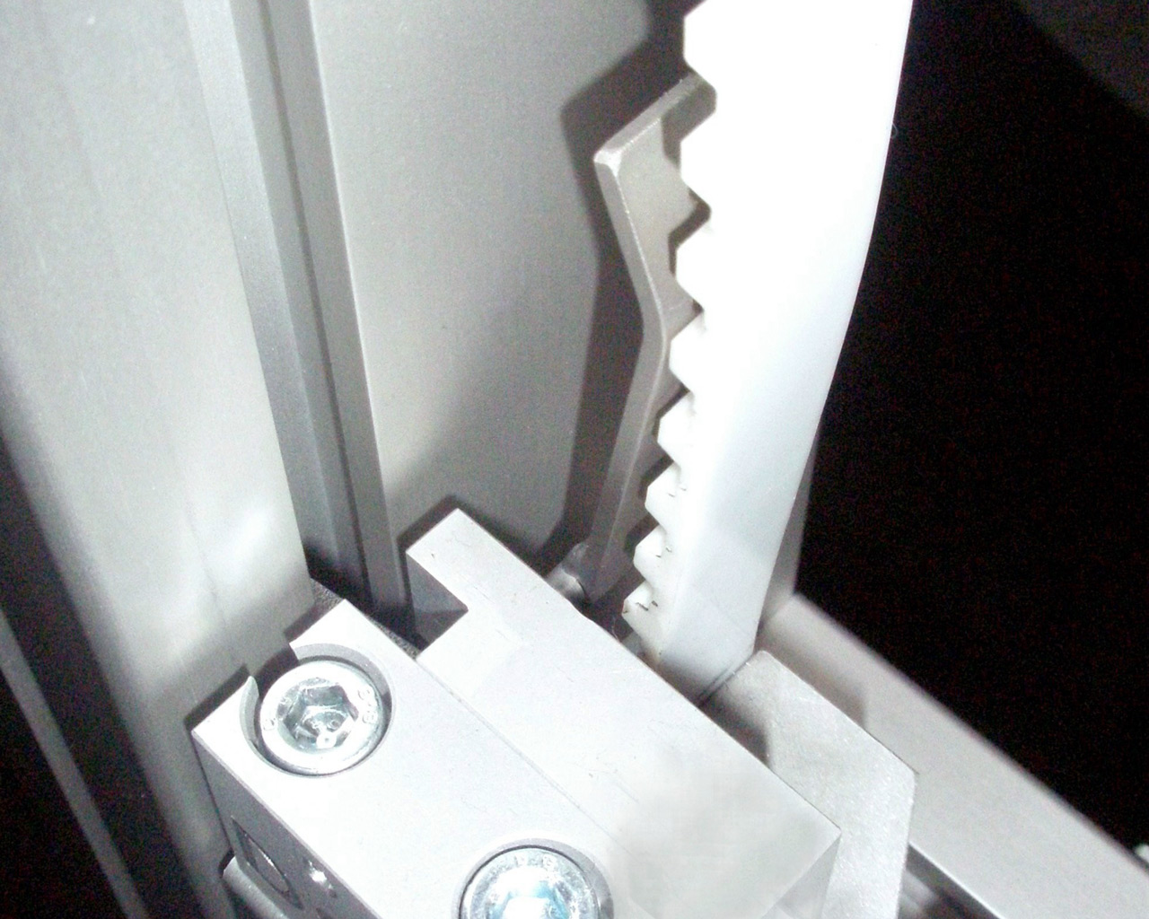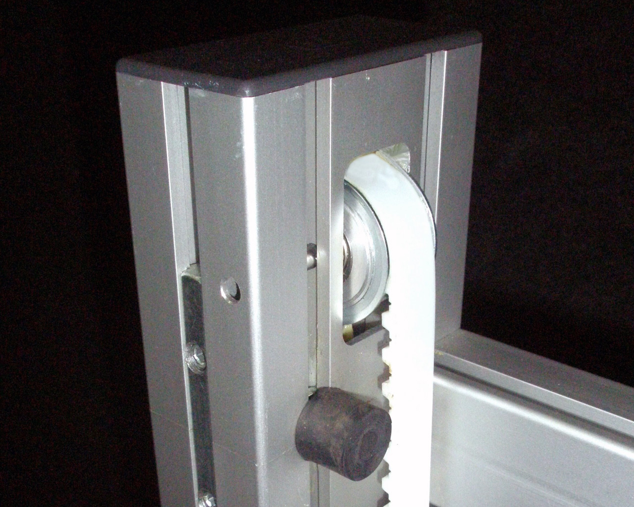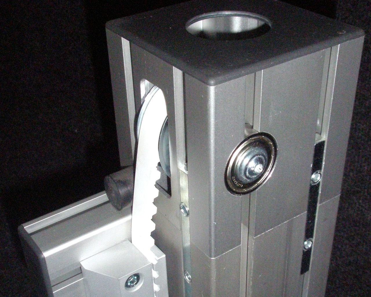 Um eine hohen Sicherheitsstandart zu erreichen sind die Zahnriemen mit einer Ausfallsicherung versehen. Bei einen unverscheinlichen Fall des Defektes am Zahnriemen löst unsere Fangsicherung aus und Stoppt den Hubrahmen.