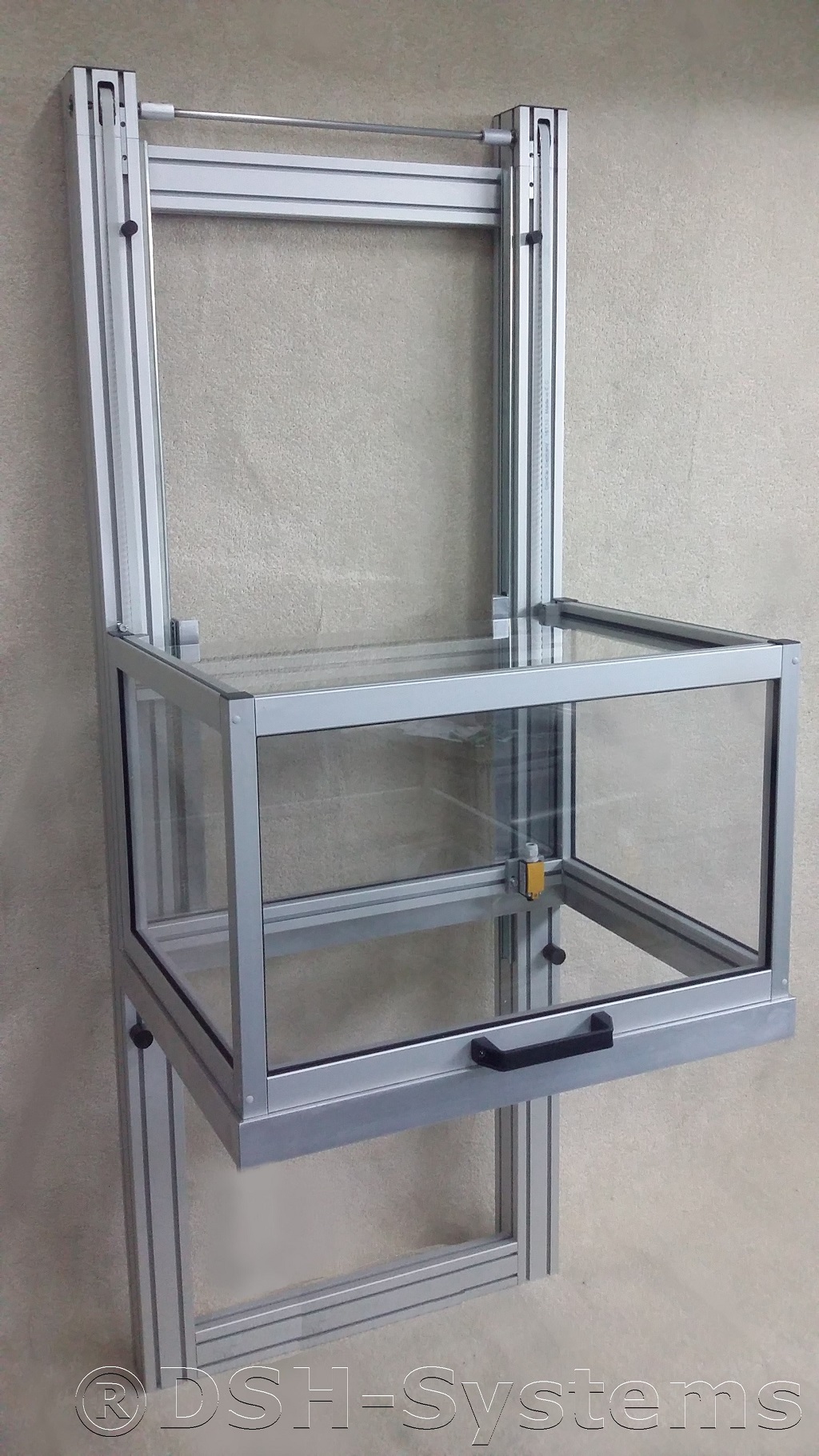 Die Manuelle verfahrbare Hubtür ist die einfache und Kostengünstige variante. Das Türblatt ist durch Ausgleichsgewichte Gewichtsausgeglichen, um ein Leichtes Auf und Zufahren per Hand zu ermöglichen. Dabei laufen die Ausgleichsgewichte unsichtbar im Hohlraum der Aluminumprofile. Es können Unterschiedliche Flächenelemente aus Polycarbonat, Plexiglas, Kunststoff, Aluminium-Verbundwerkstoff oder Edelstahl von 2-8 mm eingesetzt werden.