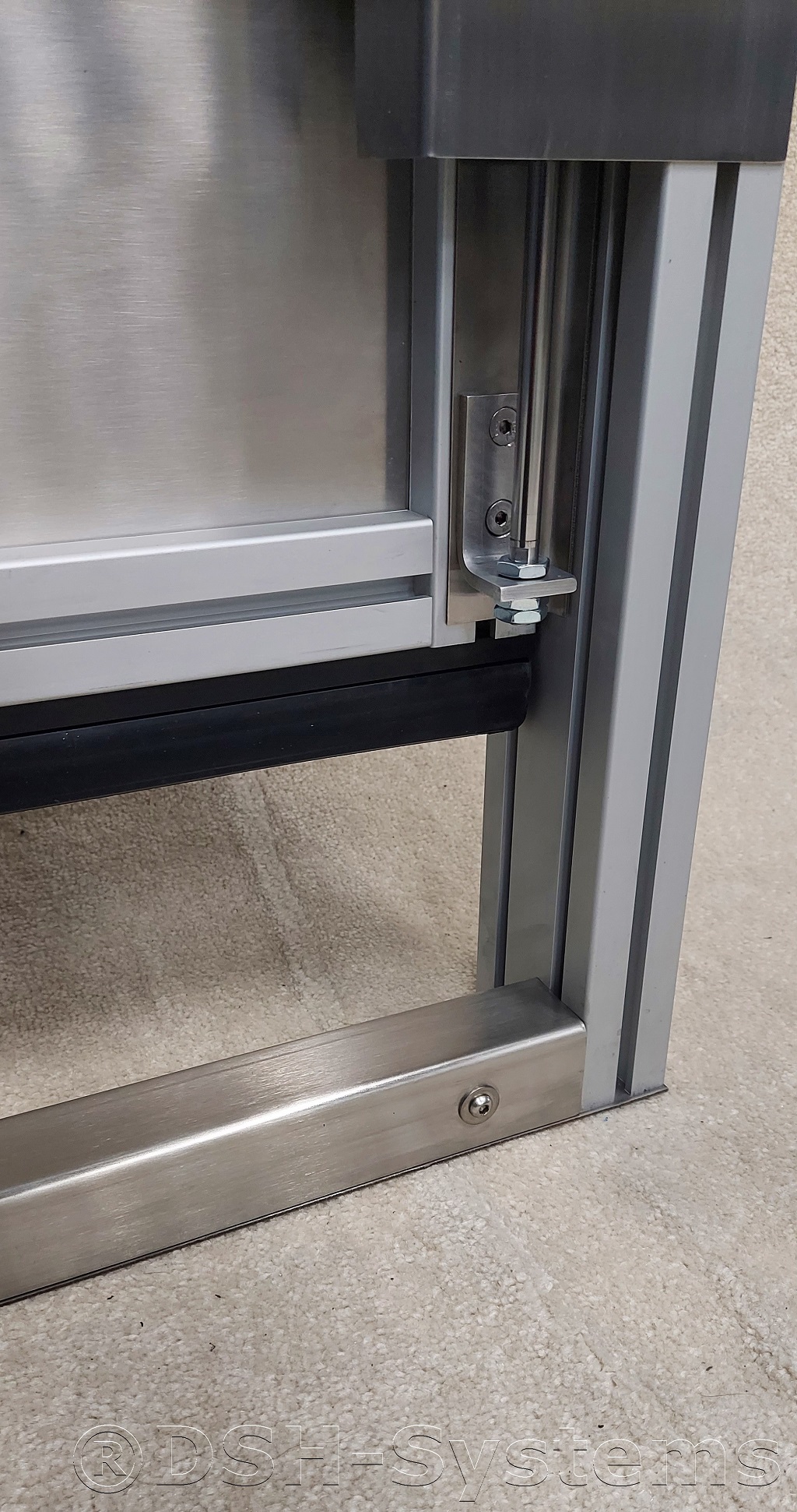 Das ist eine Sonderausführung für eine Laserschweißanlage. Die Besonderheit ist die Spaltfreie Ausführung und alle Kunstoff- und Sicherheitsbauteile sind extra vor Laserstrahlen geschützt. Desweiteren ist eine Pneumatische verriegelung mit Abfrage verbaut. Alle Komponenten sind für den Schweißbereich zugenlassen.