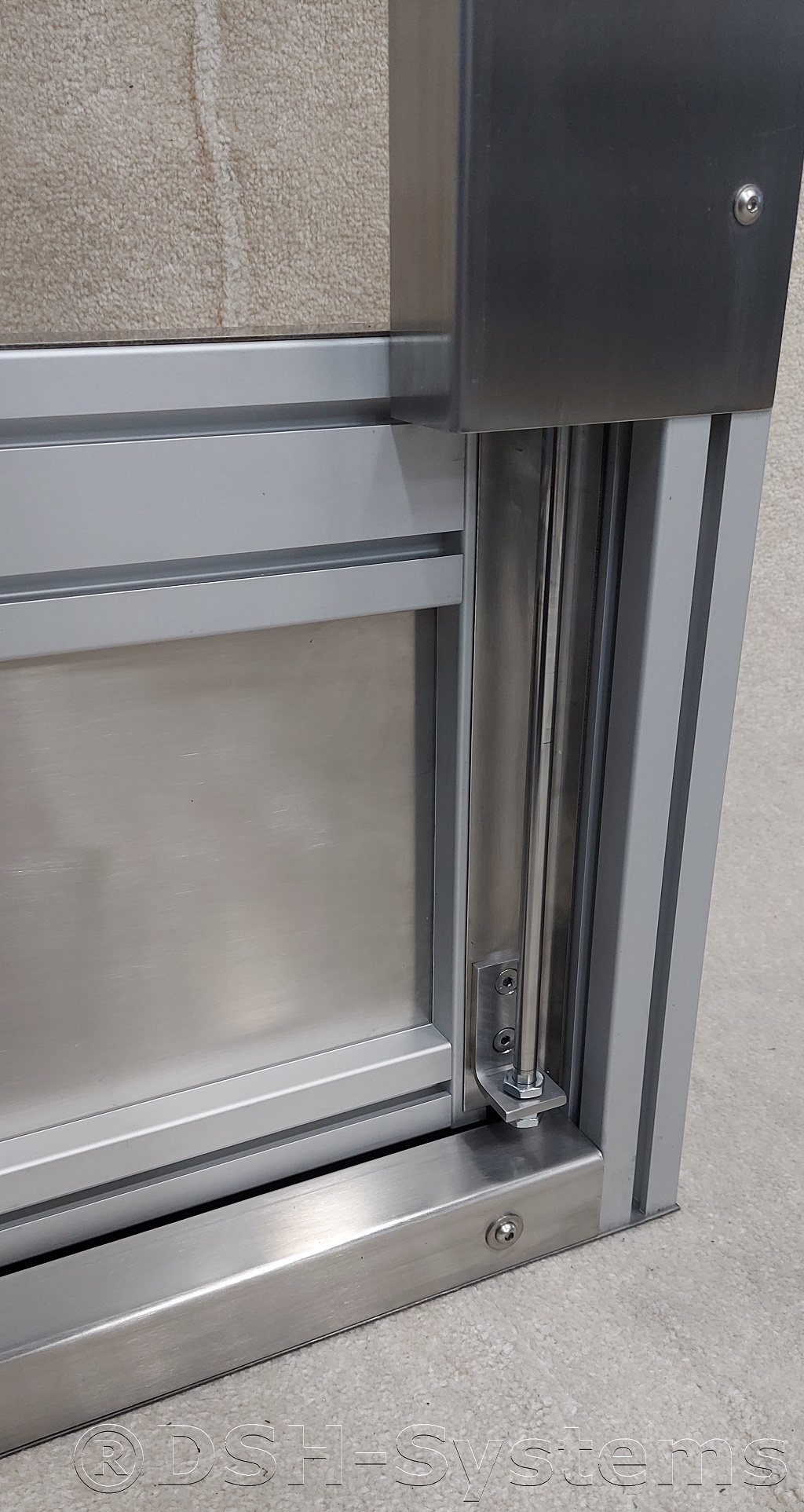Die Pneumatisch verfahrbare Hubtür ist die einfache und Kostengünstige variante Automatisch die Hubbewegung auszuführen. Meistens wir die Ansteuerung und Verarbeitung von der Anlagensteuerung übernommen. Es können Unterschiedliche Flächenelemente aus Polycarbonat, Plexiglas, Kunststoff, Aluminium-Verbundwerkstoff oder Edelstahl von 2-8 mm eingesetzt werden.
